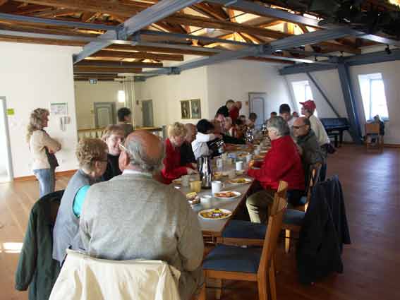 Für die Wanderung im Oktober hatte sich Anneliese wieder etwas Besonderes ausgedacht. Wir trafen uns am Bahnhof in Michelbach und besuchten als erstes das in diesem Jahr neu eröffnete barocke Schlösschen. Dort gab es erst einmal ein Frühstück, bevor uns im Museum die Geschichte des Freigerichts näher gebracht wurde.