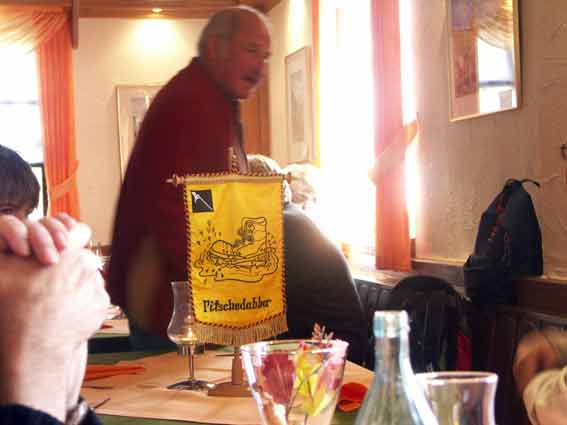 Der Rückweg führte uns dann über die Weinberge, wobei wir uns noch das eine oder andere Mal stärken mussten. Der Wimpel im Rucksack von Franz ist immer dabei.