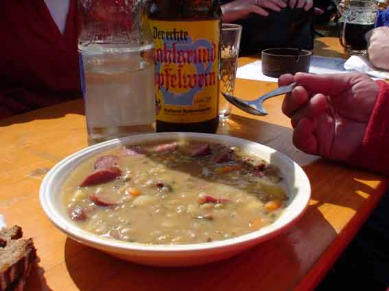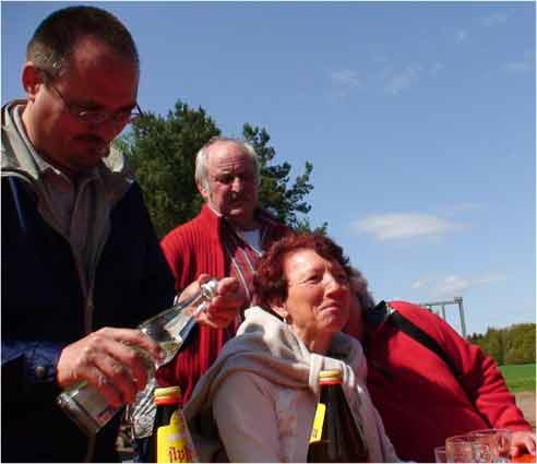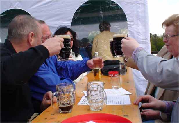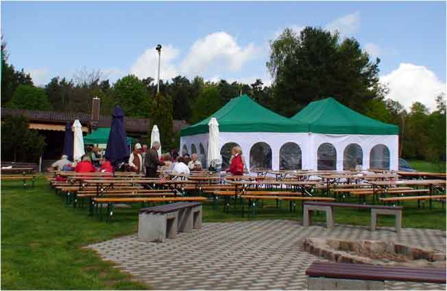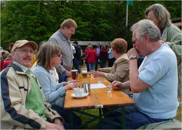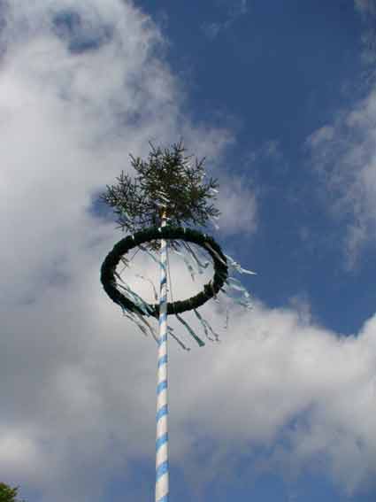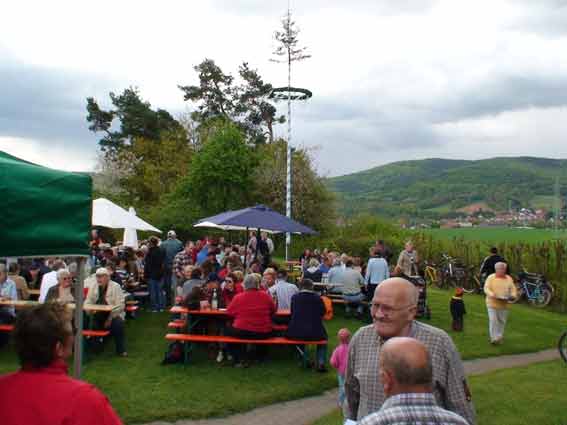 Am 1.Mai 2008 wanderten wir "nur" etwa anderthalb Stunden rund um Michelbach, um dann mit den "Weinspechten" in Michel bach den Mai zu feiern. Dort war bereits am Vorabend der Maibaum aufgestellt worden und zum Fest gab es Bier vom Fass und natürlich auch Michelbacher Wein, "Äppelwoi" und andere Getränke. Es war ein Riesentopf Erbsensuppe gekocht worden, auf dem Grill lagen Steaks und Würstchen, und nachmittags gab es dann auch noch Kaffee und Kuchen. Das Wetter hatte nach der langen und kalten Schlechtwetterperiode auch endlich ein Einsehen mit uns.
