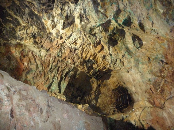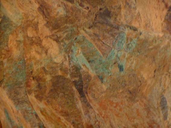 Die verschiedenen Verfärbungen des Gesteins zeigen, dass es nicht nur Kupfer enthält, sondern auch noch eine ganze Reihe anderer Mineralien.