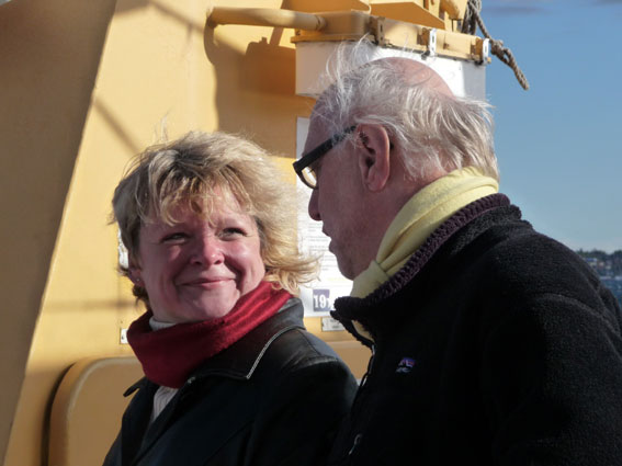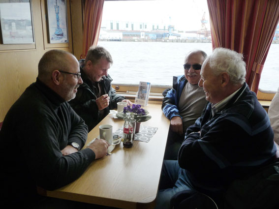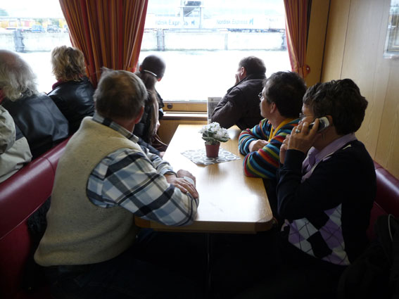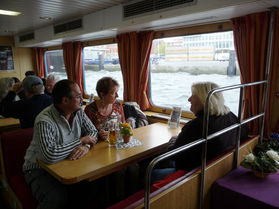 Wir kamen gegen 11:00 Uhr in Kiel an und da wir noch 2 Stunden Zeit hatten, bis die Demo anfing, machten wir kurzentschlossen eine Hafenrundfahrt auf der Kieler Förde. Es war ziemlich kalt, zumal ein kräftiger Wind blies, aber im Schiff konnten wir im Warmen sitzen und hatten dazu eine tolle Aussicht. Nur wenige trauten sich an Bord, wo man tüchtig durchgeblasen wurde.
