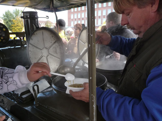 Gegen die Kälte half eine warme Erbsensuppe aus der Feldküche.