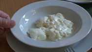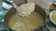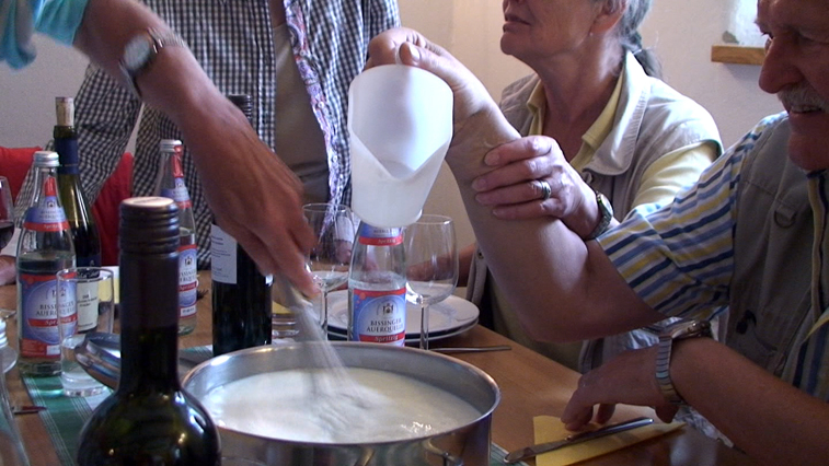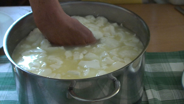 Käsebruch ca. 5 Min. ruhen lassen, dann vorsichtig mit der Hand im