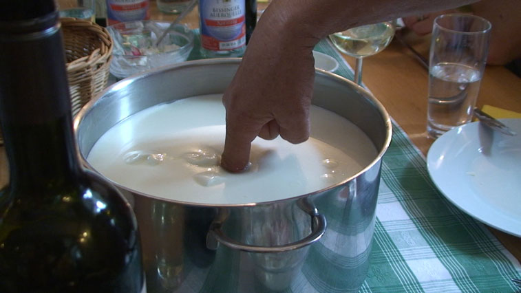 Milch (nicht homogenisiert) wird auf 34° erwärmt und dann durch