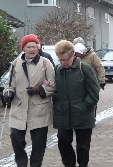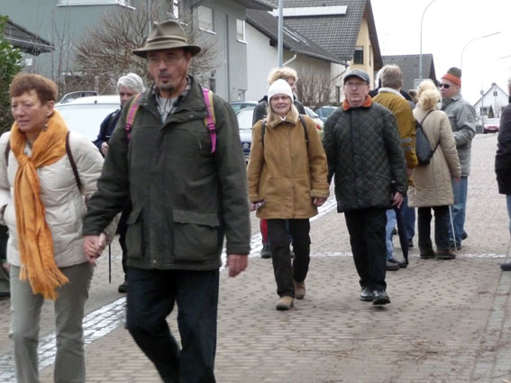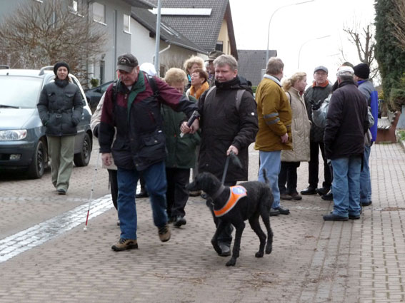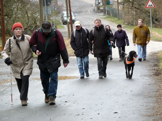 Am 5.Februar 2011 fand unsere diesjährige Kräppelwanderung statt, bei der, wie allseits bekannt, nicht nur die Bein- sondern auch die Bauchmuskulatur trainiert wird, denn es ist unsere Faschingswanderung. Die Wanderung war von Anneliese und Franz organisiert worden. Wir trafen uns in Bernbach bei Franz' Sohn Dirk und um 9:30 ging es dann los. Blindenhund Hippi war auch dabei.