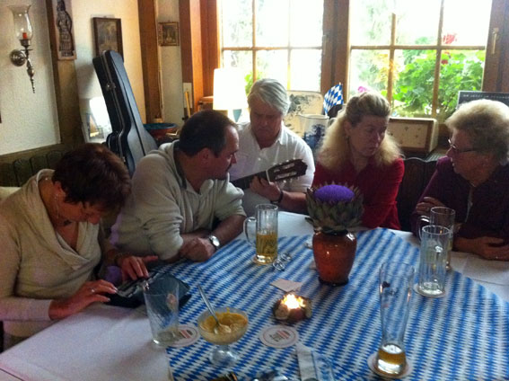Am 8.Oktober 2011 fand unser diesjähriges Herbstfest, das wir Oktoberfest genannt haben, in Peter's Bürgerbräu in der Friedrichstraße 1 in Hanau statt. Peter hatte für jeden einen Teller mit bayerischen Schmankerln vorbereitet. Achim spielte auf der Gitarre und wir sangen das eine oder andere Lied.