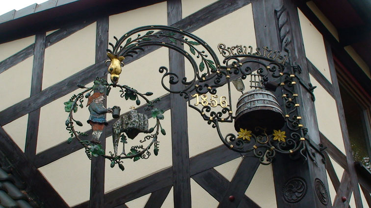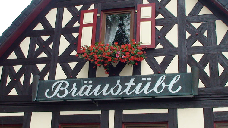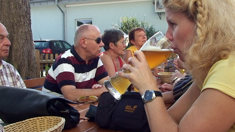 Wir wohnen im Hotel "Grüner Baum". Hinter dem Haus befindet sich ein großer Biergarten, wo wir unseren ersten Durst löschen können.