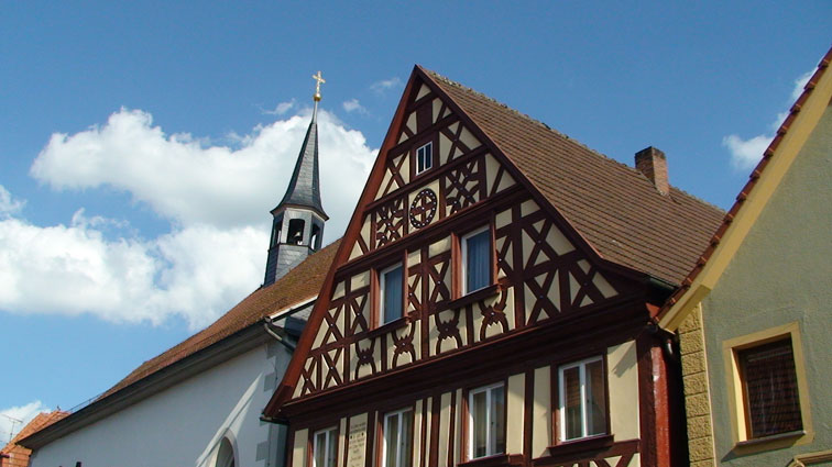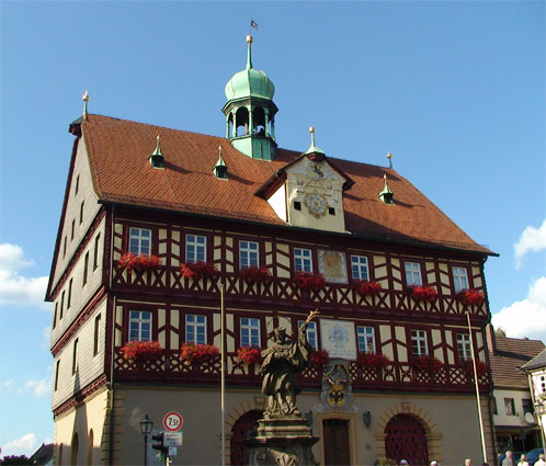 Rathaus aus dem 17.Jh. ist ein dreigeschossiges fränkisches Fachwerkhaus.