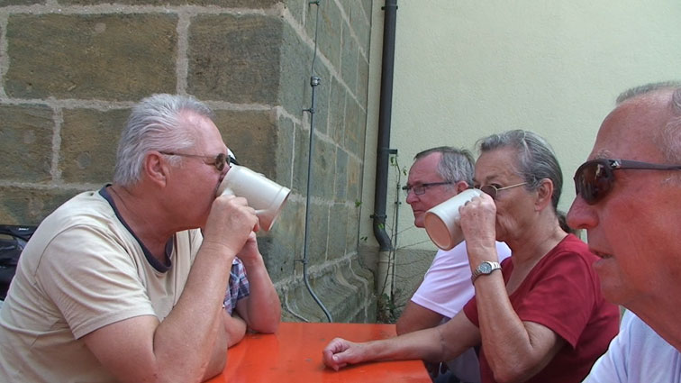 Am Bahnhof in Bad Staffelstein werden wir von Achim, Margit, Udo und Habu abgeholt,