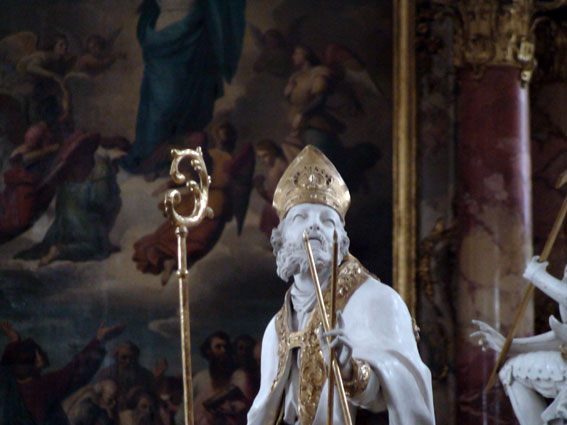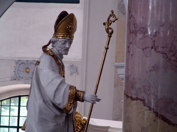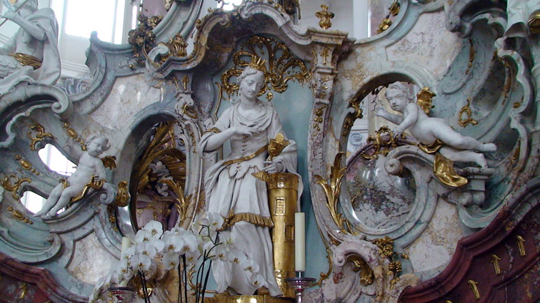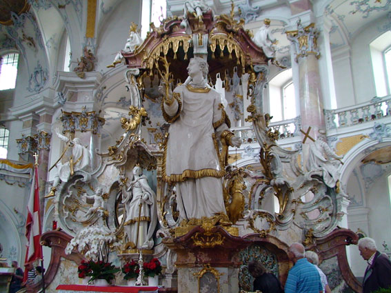den Rokokoaltar. Er steht frei im Raum und die vierzehn Nothelfer befinden sich
