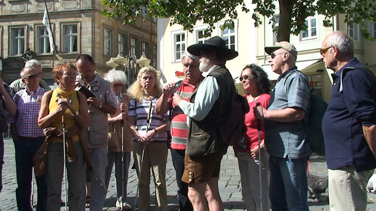 ist unser Stadtführer, Herr Berkenkamp ein Norddeutscher in bayerischem Outfit. |