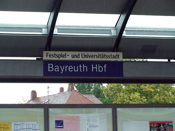 Am Donnerstag ist uns das Wetter wieder nicht so wohlgesonnen, aber wir fahren mit dem Zug, dieses Mal in die andere Richtung, etwa eine Stunde nach Bayreuth, weltberühmt durch die jährlich im Bayreuther Festspielhaus auf dem Grünen Hügel stattfindenden Bayreuther Festspiele. Richard Wagner ließ dieses Opernhaus bewusst abseits der Metropolen errichten. Zur Verwirklichung dieses Wunsches trugen maßgeblich sein Mäzen König Ludwig II. von Bayern und seine Förderin Marie Gräfin von Schleinitz bei. Die ersten Festspiele unter Wagners Leitung begannen am 13. August 1876. Es war die Uraufführung des kompletten Rings des Nibelungen.