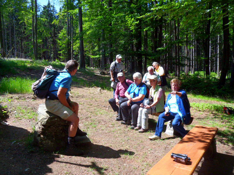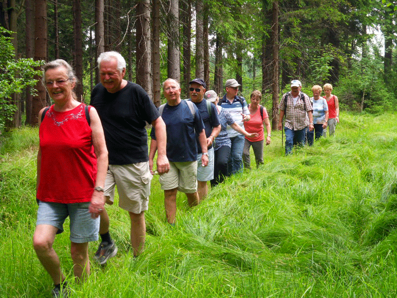 Am Montag ging die Wanderung durch Wald und Wiesen nach Pleystein, wo die Wallfahrtskiche Heiligkreuz hoch oben über der Stadt auf einem Rosenquarzfelsen steht. Am Dienstag stand eine Wanderung durch das Waldnaabtal und am Mittwoch zur Mühle Gehenhammer auf dem Programm. Im Waldnaabtal sind es der naturbelassene Flusslauf und die bizarren Felsformationen, die den Wanderer anziehen. Die Mühle Gehenhammer stammt aus dem 19.Jh. und wurde vom Oberpfälzer Waldverein restauriert. Das große Mühlrad und auch das wasserbetriebene Hammerwerk drehen sich wieder. Dort gibt es eine Brotzeitstube, in der die Pitschedabber einkehren.