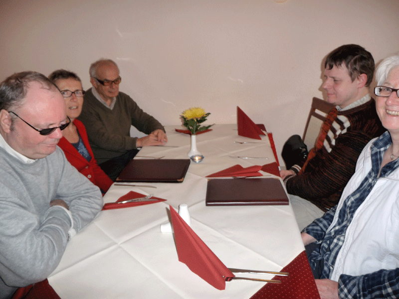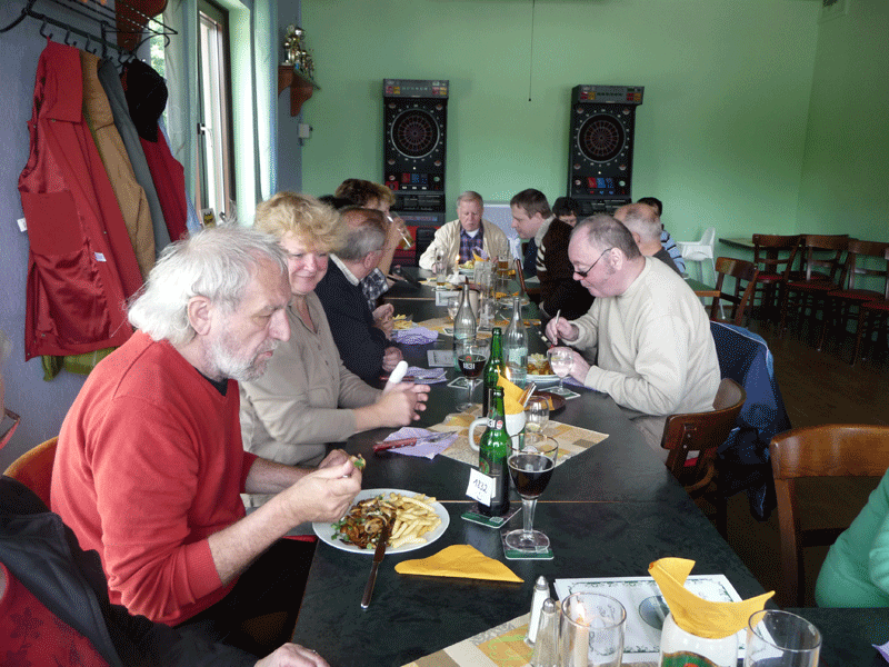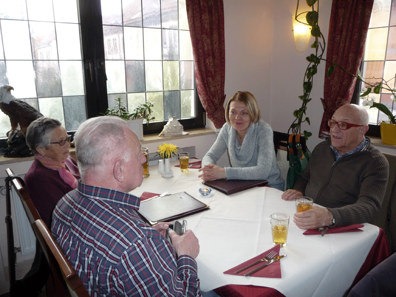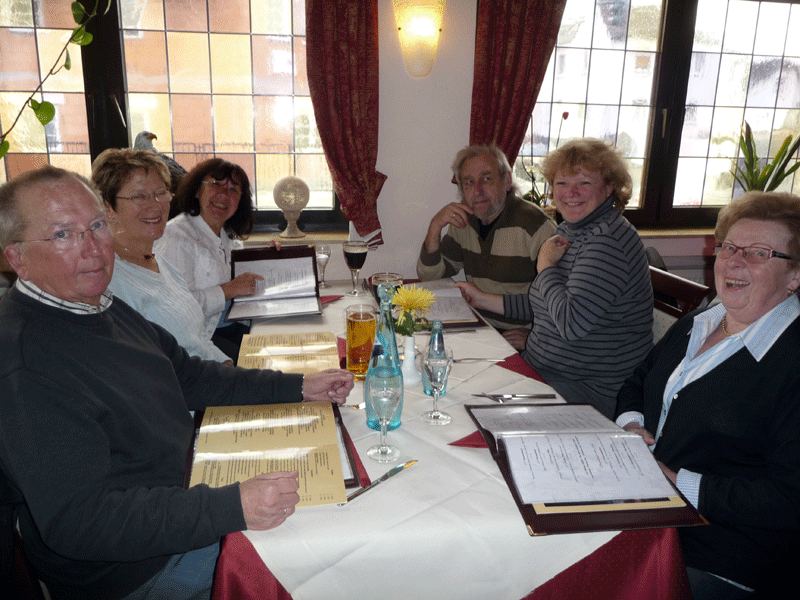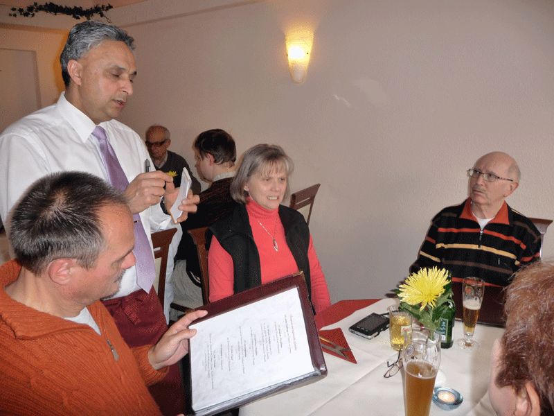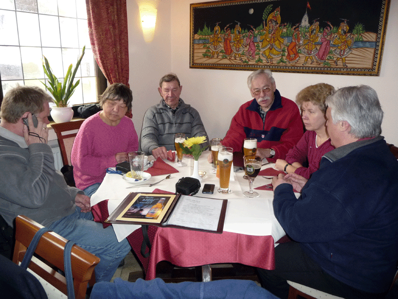 In Mittelbuchen kehren wir im indisch-deutschen Restaurant Adler ein. Hier sind schon einige Mitglieder, die nicht mitwandern konnten eingetroffen. Anschließend wandern wir wieder zurück nach Wilhelmsbad.