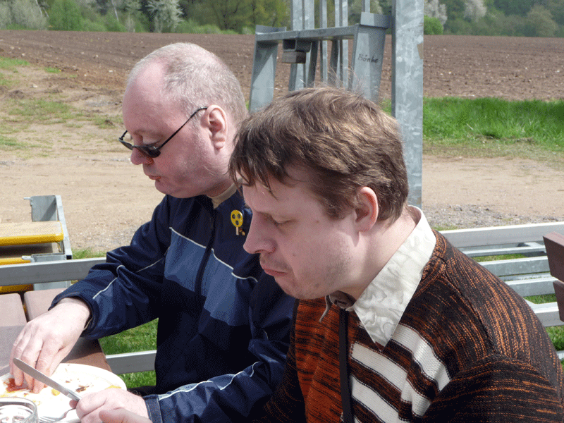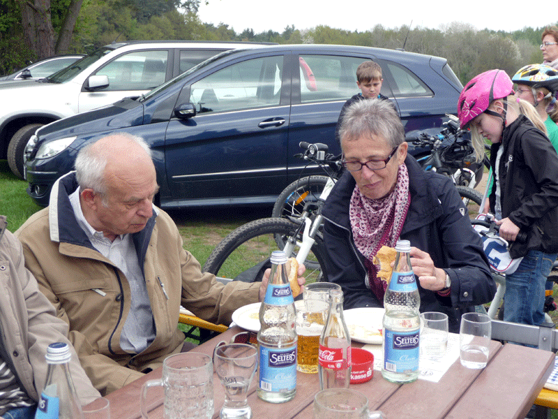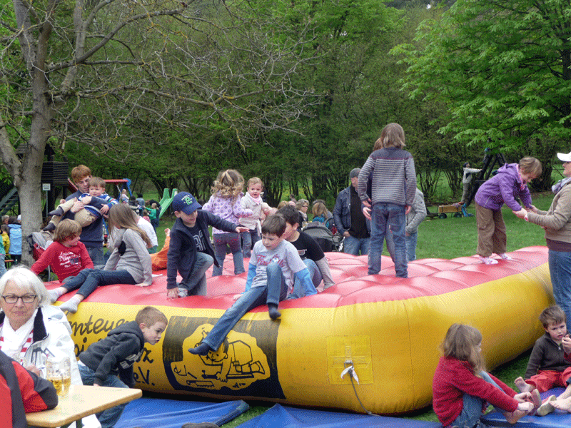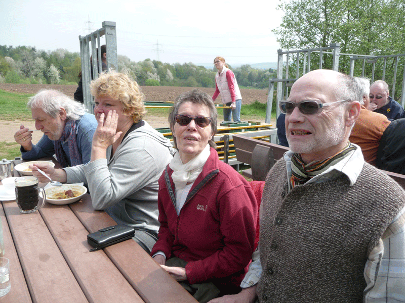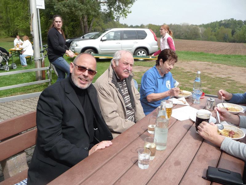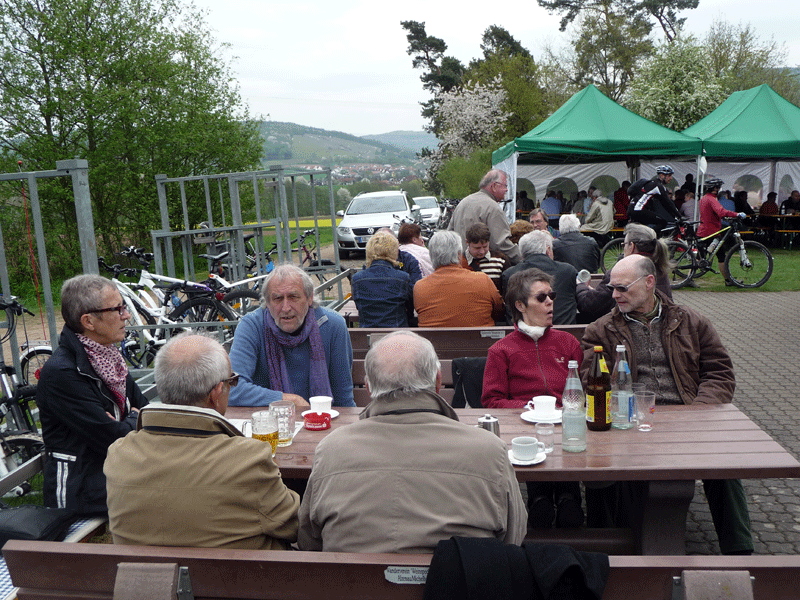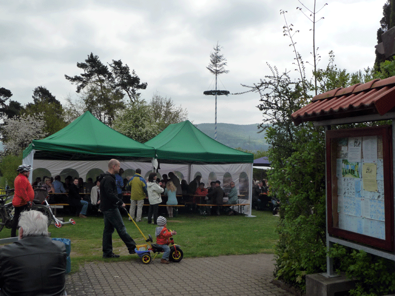 Am 01.Mai treffen wir uns zur traditionellen 1.Mai-Feier am Wanderheim "Weinspechte" in Michelbach. Eine kleine Truppe wird von Franz am Bahnhof in Michelbach abgeholt und über einen kleinen Umweg durch Wald und Flur in ca. eineinhalb Stunden dorthin geführt. Bei den "Weinspechten" war ein großer Festplatz hergerichtet mit Zelten, Hüpfburg und natürlich Essen und Trinken.