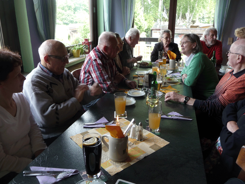 Am 23.Mai machen wir unter der Führung von Bernd und Angela eine Wanderung zum Bärensee. Wir treffen uns am Freiheitsplatz in Hanau und wandern durch die Bulau entlang der Kinzig und dem Erlensee zum Campingplatz am Bärensee. Dabai geht es manches Mal ganz schön über Stock und Stein. Am Bärensee kehren wir in der dortigen Brasserie ein, wo bereits die "Nichtwanderer" auf uns warten.