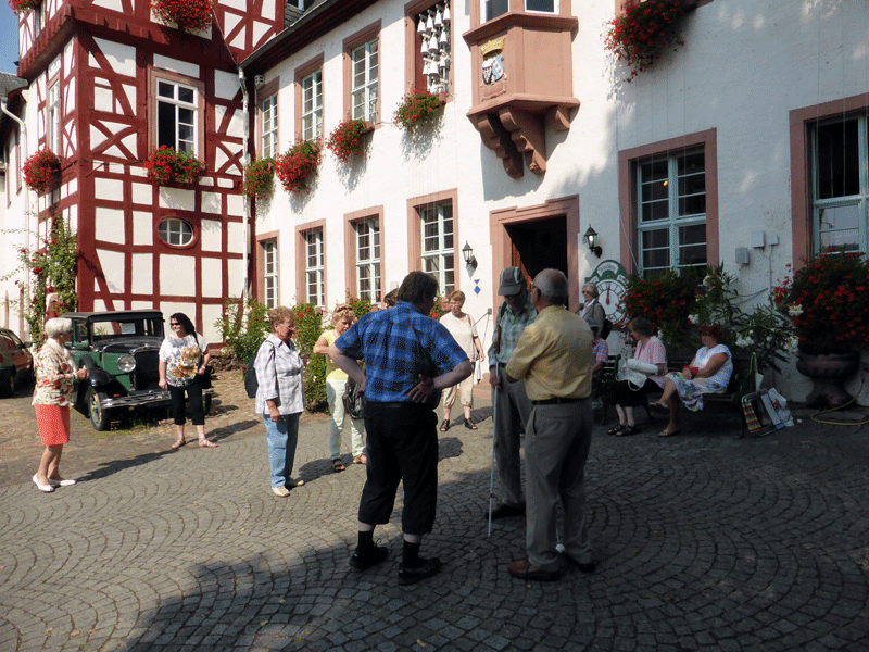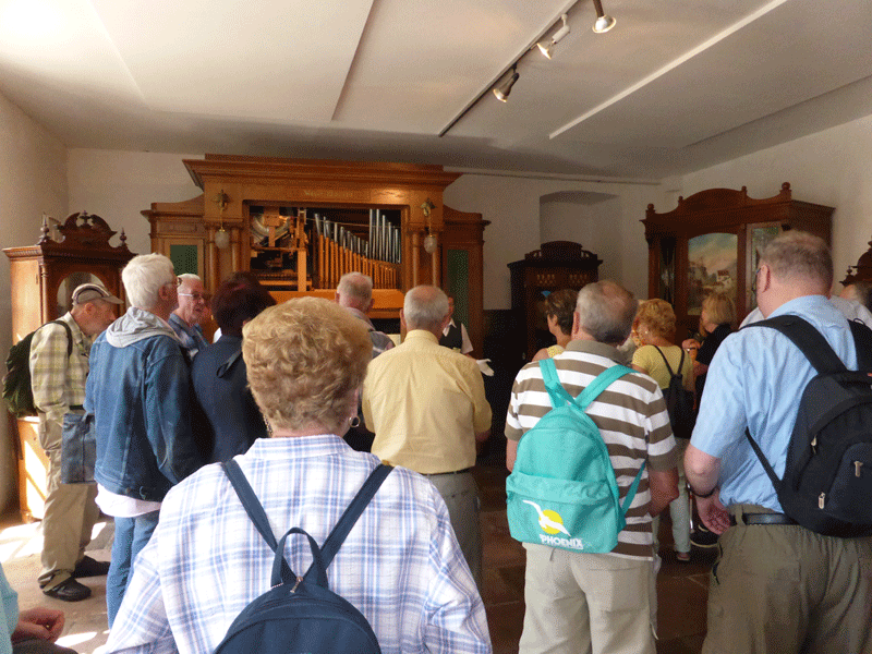 Das Ziel des Sommerausflugs 2015 war Rüdesheim am Rhein und dort das Museum Siegfrieds Mechanisches Musikkabinett, in dem 350 mechanische Instrumente aus drei Jahrhunderten ausgestellt und zu hören sind - von der Spieluhr aus dem 18. Jahrhundert bis zur Jahrmarktsorgel. Das Museum befindet sich im Brömserhof, einem Gutshof und Adelssitz aus dem 16. und 17.Jh. An der Südwestecke des Haupthauses steht ein repräsentativer viereckiger Fachwerkturm mit drei Geschossen. Sein hohes Zeltdach ist von vier Türmchen mit spitzen, sechseckigen Helmen flankiert. Untersuchungen seiner Holzbalken im Dachgeschoss zeigten, dass die dafür verwendeten Bäume 1416/1417 gefällt wurden. Damit wäre der Turm der bisher älteste bekannte Fachwerkbau im Rheingau.