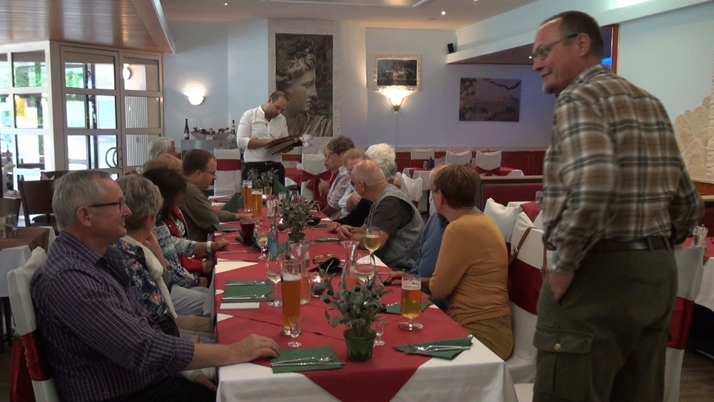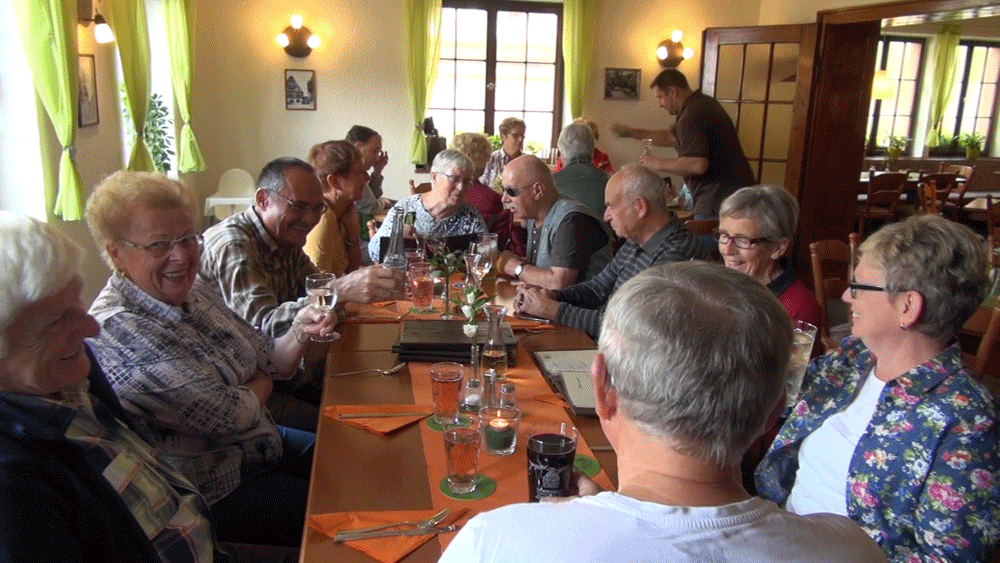 Wir kehren dann noch in der Waldgaststätte ein und bevor wir mit dem Bus wieder zurückfahren, gibt es noch einen Schoppen neuen Wein. Sehen Sie sich an, was passiert, wenn die Pitschedabber einen Schoppen Wein in die Hand bekommen und klicken Sie auf das nächste Bild.
