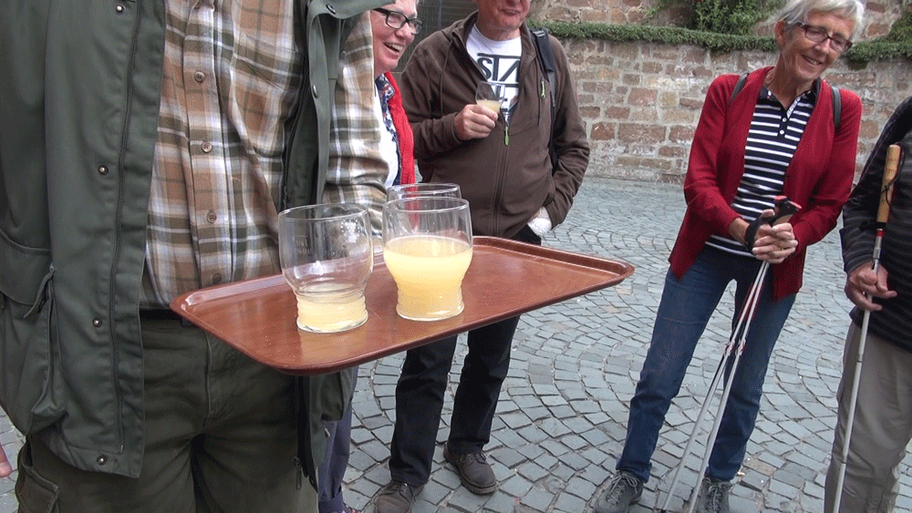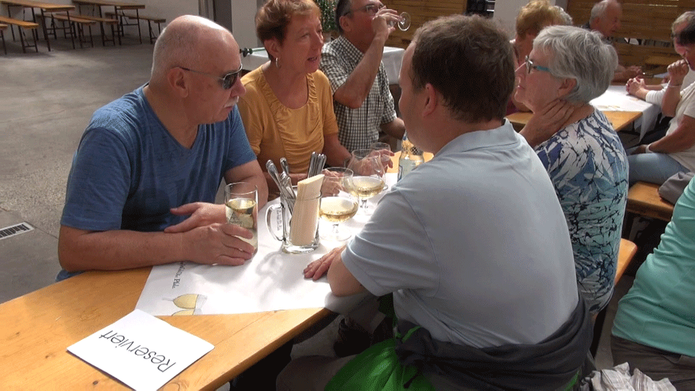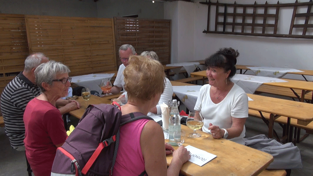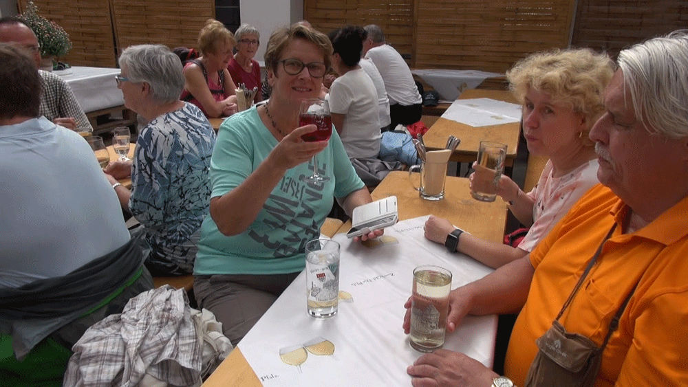 Pause bei Wein, Weinschorle und anderen Getränken treten wir den Rückweg