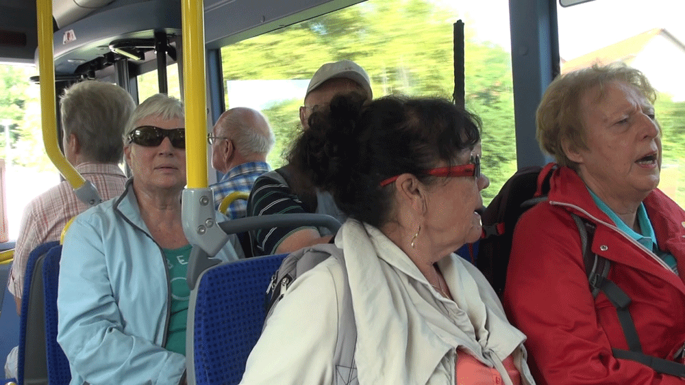 Unsere Wanderfahrt geht zu Ende. Am Abend sitzen wir noch zusammen, singen Lieder, von denen Sie gerade eins gehört haben, und nehmen Abschied von der Pfalz. Wir danken Achim für die gute Organisation und freuen uns schon auf die nächste Wanderwoche.