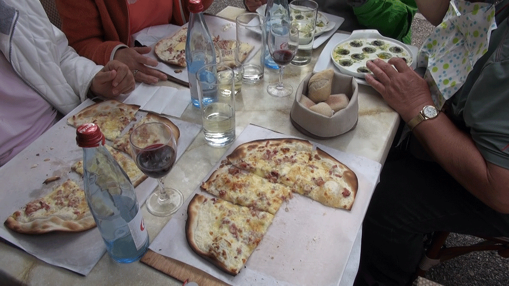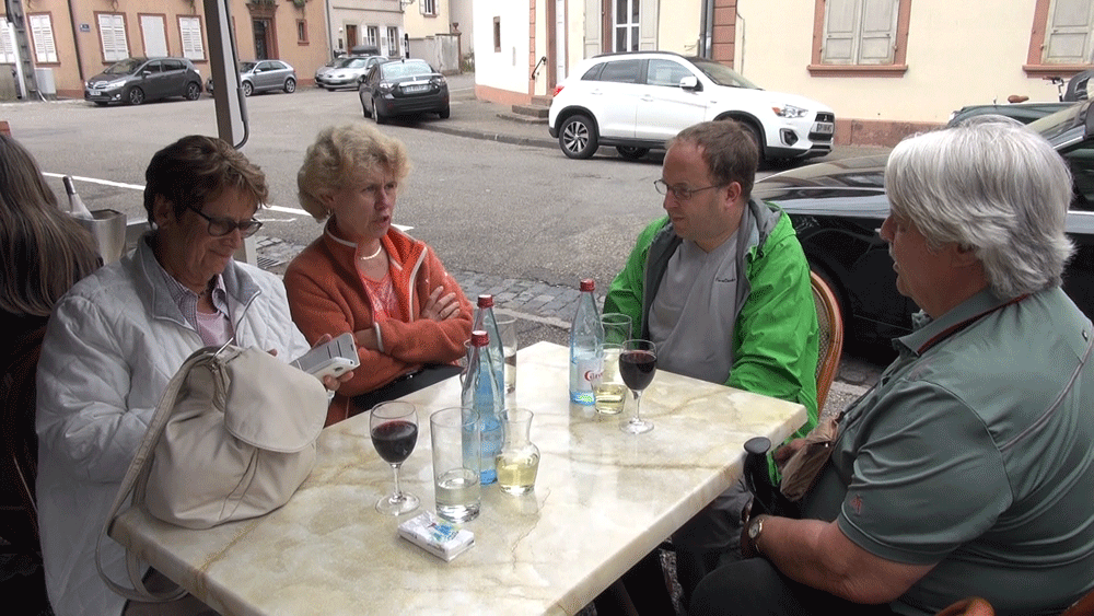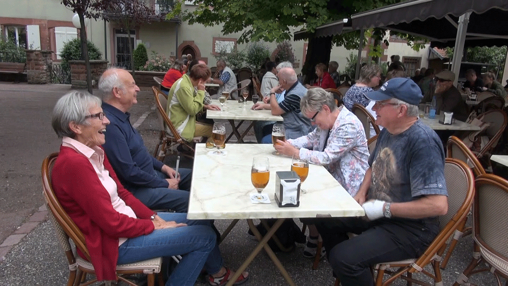 und genießen außer Getränken auch einige elsässer Spezialitäten.