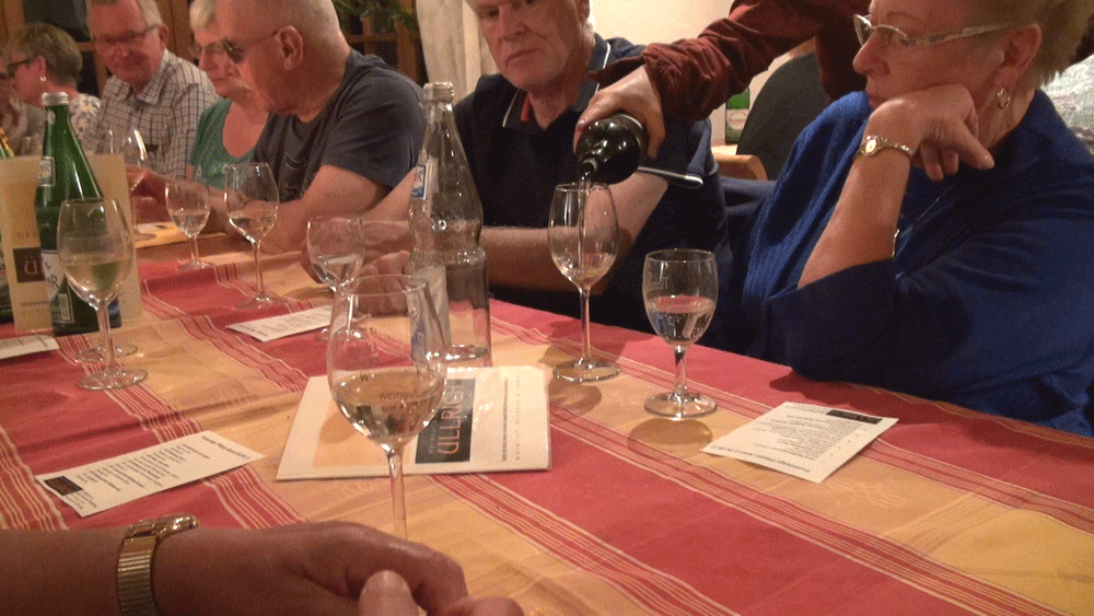 Anschließend probieren wir den frisch gekelterten Wein, anderswo Federweißer