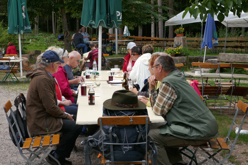 des Pfälzer Waldvereins ein und wandern dann zurück zur Bushaltestelle.