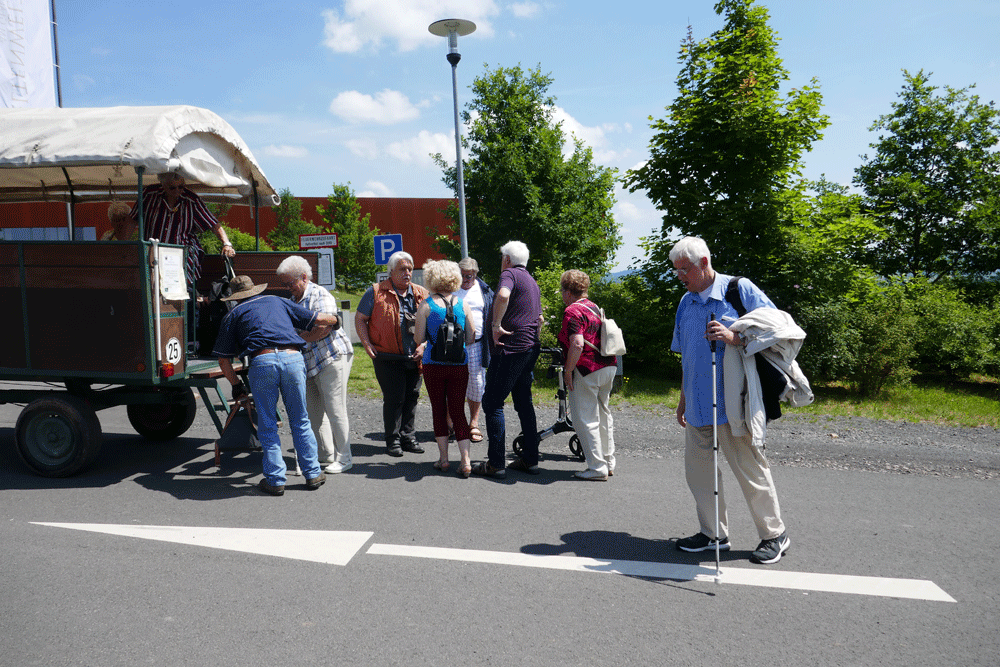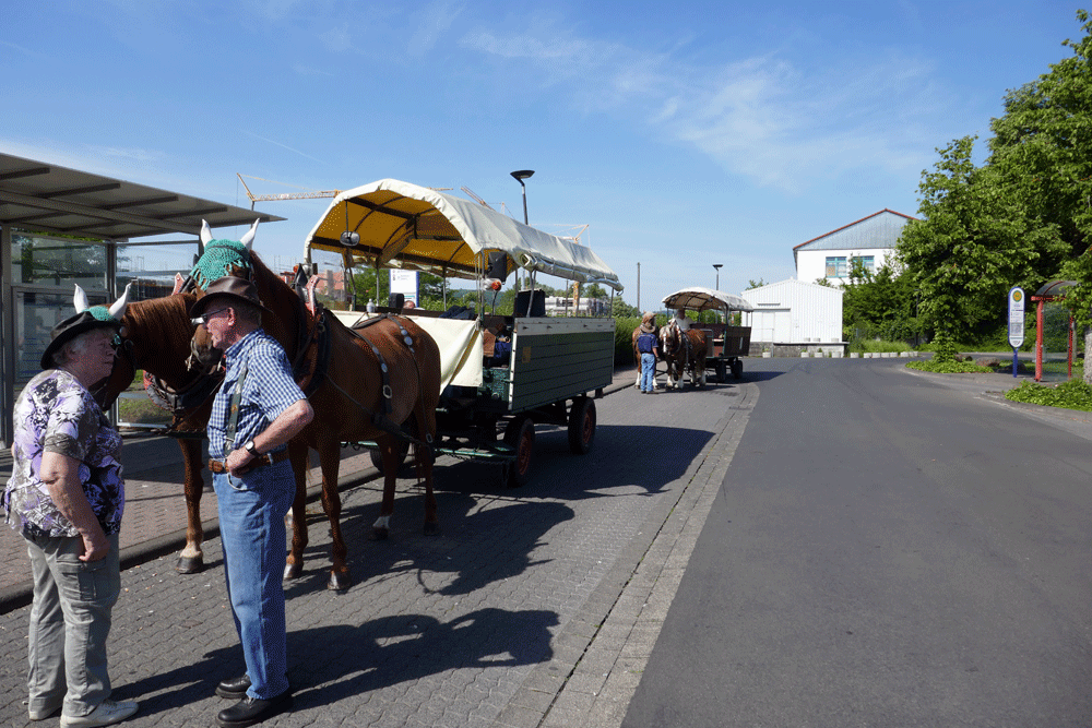 Sehbehinderten am Büdinger Bahnhofein. Dort standen schon 2 Pferde-Planwagen