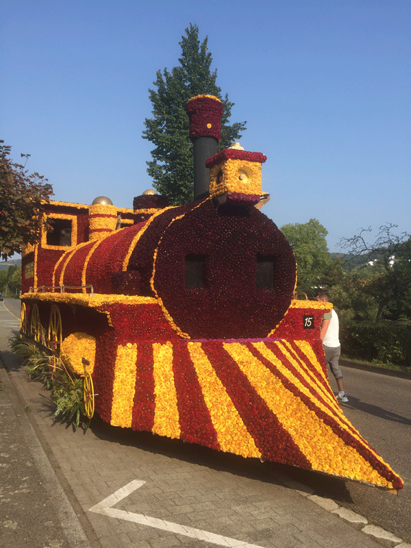 Der Blumenkorso in Bad Ems besteht seit 1964. Der rund 4 km lange Umzug besteht aus rund 30 Motivwagen und zahlreichen Musikkapellen. Die Wagen werden aus über 1,5 Mio Dahlien und mehreren Hunderttausenden anderen Schnittblumen gestaltet. Hier einige Bilder dazu:
