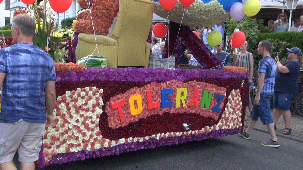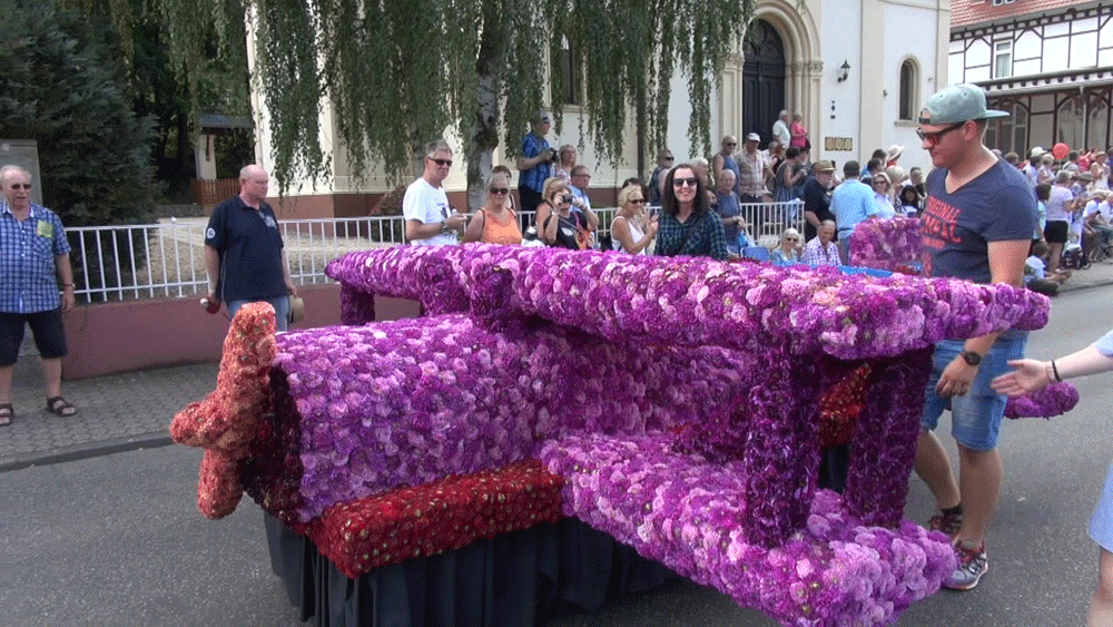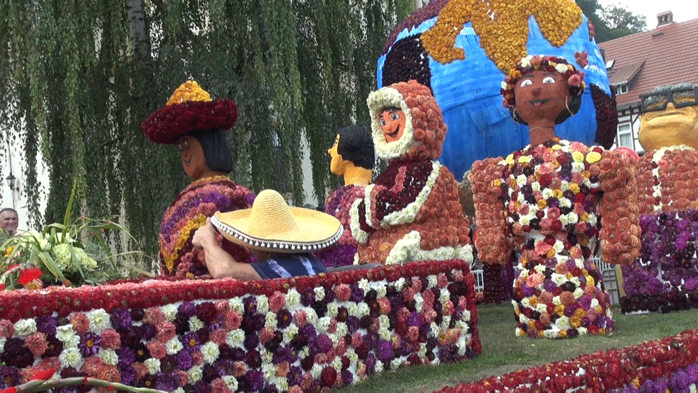 sondern auch den kompletten Umzug der phantasievoll geschmückten Blumen-Motiv-Wagen