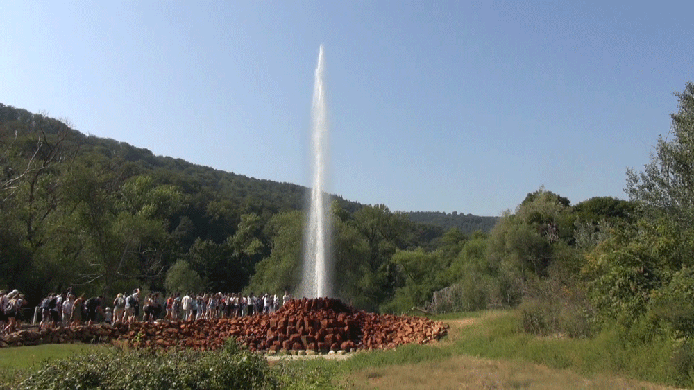 Stunden steigt eine beeindruckende Wasserfontäne bis zu 60 m hoch in den
