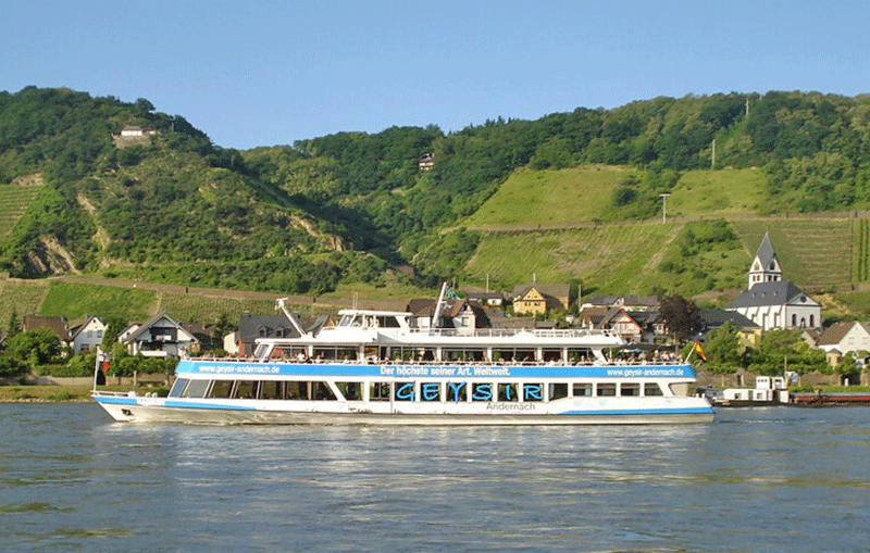 Danach bestiegen wir ein Schiff und fuhren 15 Minuten lang auf dem Rhein zum