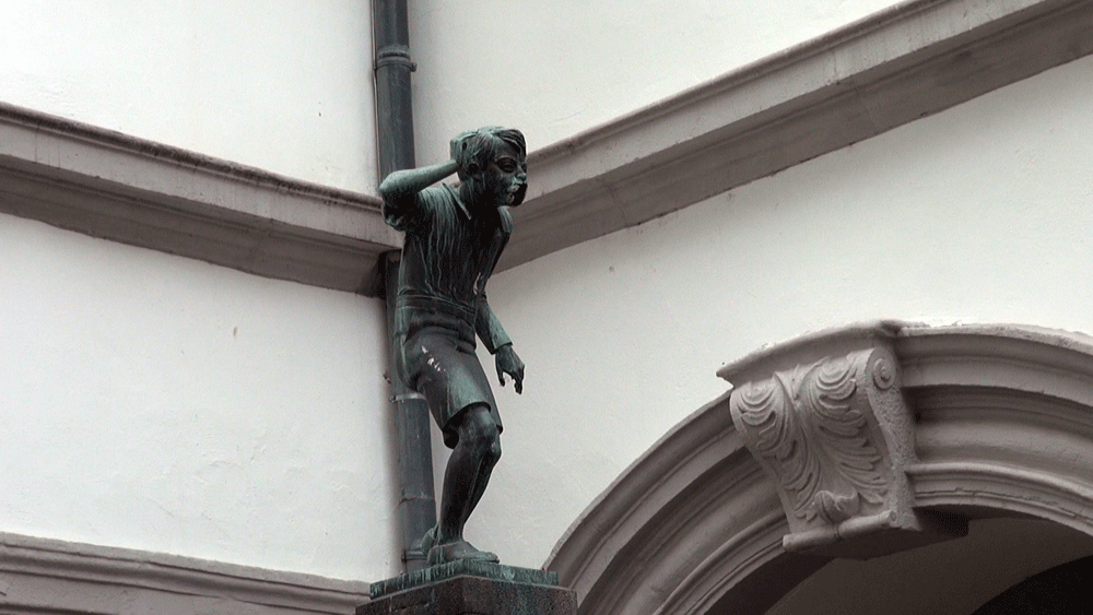 Text von Brigitte Ender über die "Koblenzer Originale", die als Bronzefiguren über die Stadt verteilt stehen, und von den Blinden mit den Händen "gesehen" werden konnten: