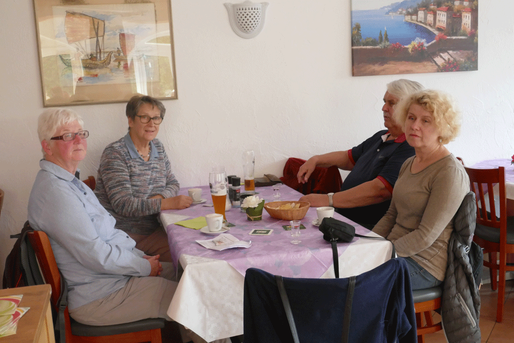 Gegen ein Uhr waren wir wieder zurück in Haitz und kehrten wir zum Abschluss dieser sehr schönen Wanderung in der Pizzeria „Da Lucia“ ein. Inzwischen waren noch Josef und Ingrid gekommen, die an der Wanderung nicht teilnehmen konnten.