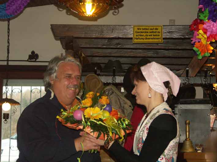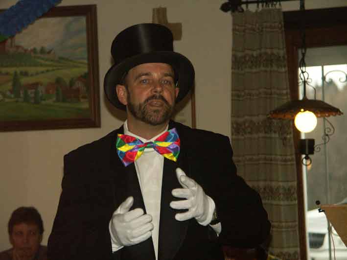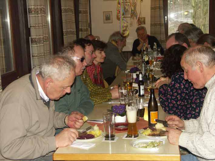 Nach einem „kleinen Kurzen“ begann das Faschingsprogramm mit Büttenreden und deftigen Kommentaren unseres Vorsitzenden Josef Ender. Die Vorträge berichteten von Kindheitserinnerungen, vom Laster des Rauchens bis hin zu Geheimnissen eines Ehelebens. Die Anatomie eines Pferdes stand zum Schluss auf dem Programm.