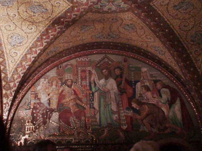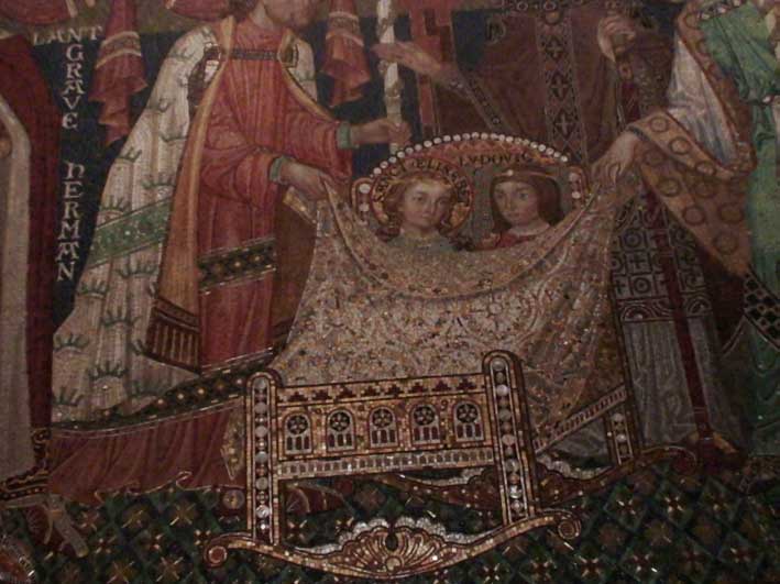 wird das Leben der heiligen Elisabeth in Mosaiken dargestellt, allerdings stammen