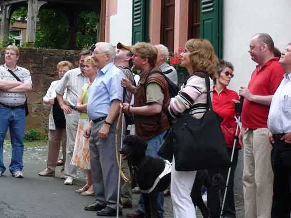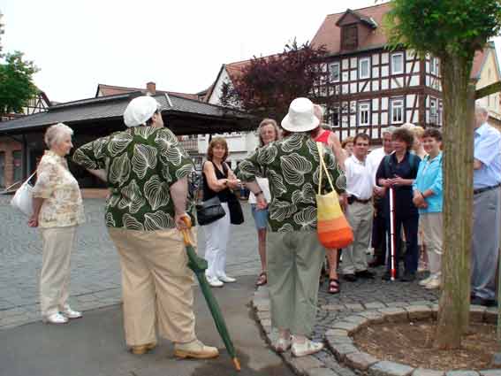 Unser Sommerausflug führte 2008 nach Büdingen. Die mit dem Zug geplante Fahrt von Hanau nach Gelnhausen verzögerte sich wegen des Unwetters am Vorabend derart, dass wir kurzerhand zwei Großtaxis charterten. So fuhren die 15 Teilnehmer aus Hanau direkt nach Büdingen, wo sie sich mit den Teilnehmern aus dem restlichen Main-Kinzig-Kreis trafen.