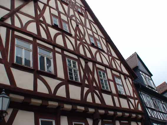 Wir gehen an wunderschönen Fachwerkhäusern in der Altstadt vorbei.
