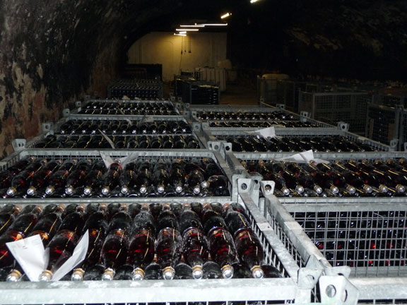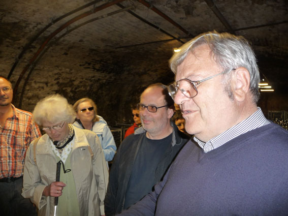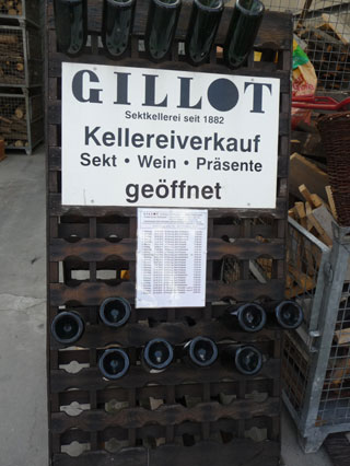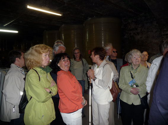 Am 29.Mai 2010 fahren 33 Mitglieder der BG Hanau mit dem Bus nach Oppenheim in Rheinhessen und kommen um ca. 10:00 Uhr in der Sektkellerei Gillot in Oppenheim an. Herr Gillot führt uns als erstes in den Keller, wo der Wein in riesigen Fässern durch eine zweite Gärung zu Sekt verarbeitet wird. Hier werden auch die bereits abgefüllten Flaschen gelagert.