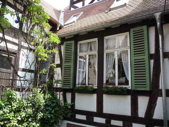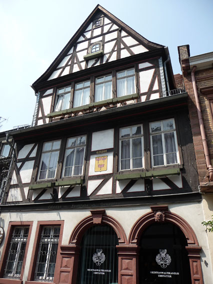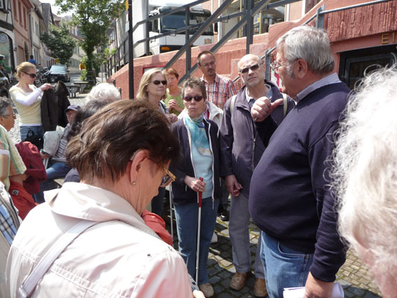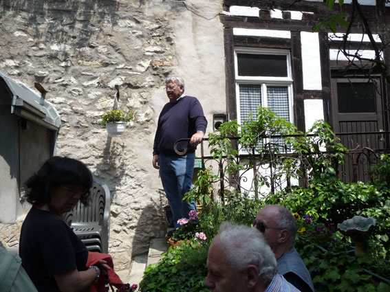 Anschließend führt uns Herr Gillot zum sog. "Hugenottenhof", dem Haus, in dem die Familie Gillot heute lebt. Der Fachwerkbau auf den mächtigen Mauern des Erdgeschosses mit zwei original erhaltenen Renaissancebögen zeugt heute noch von der Vergangenheit der alten Handelsstadt Oppenheim. Herr Gillot erwarb das Haus 1976 und restaurierte es liebevoll.