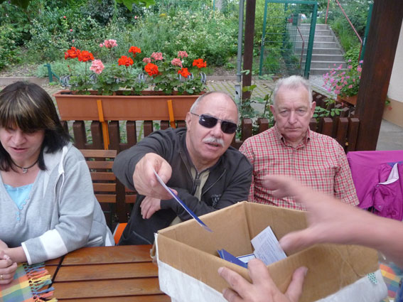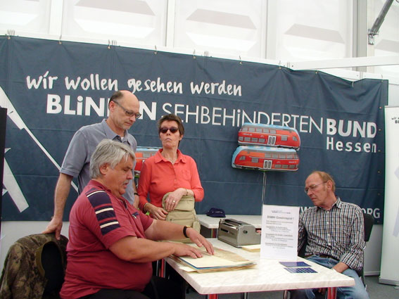 Vom Landesvorstand waren Frau Stockmann und Herr Meyer angereist, denn als Hauptprogrammpunkt sollten die Sieger des Quiz auf dem Hessentag vom 04. - 14. Juni 2009 ermittelt werden. Dort hatte der Blinden- und Sehbehindertenbund Hessen einen Stand, auf dem auch unsere Mittglieder eifrig Dienst schoben.