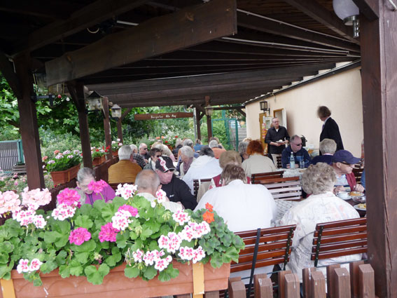 und feierten zusammen auf der überdachten Terrasse des Gartenvereins. Es